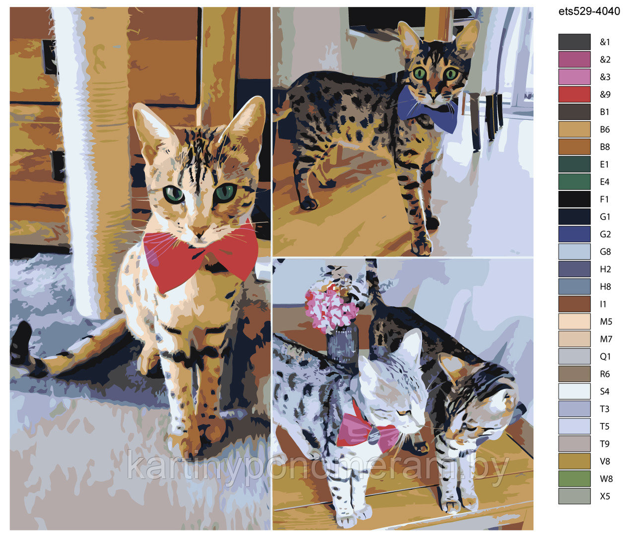 - 100 % хлопковый грунтованный холст, закрепленный на жестком деревянном подрамнике. На самом холсте изображен контурный рисунок с номерами цветов.