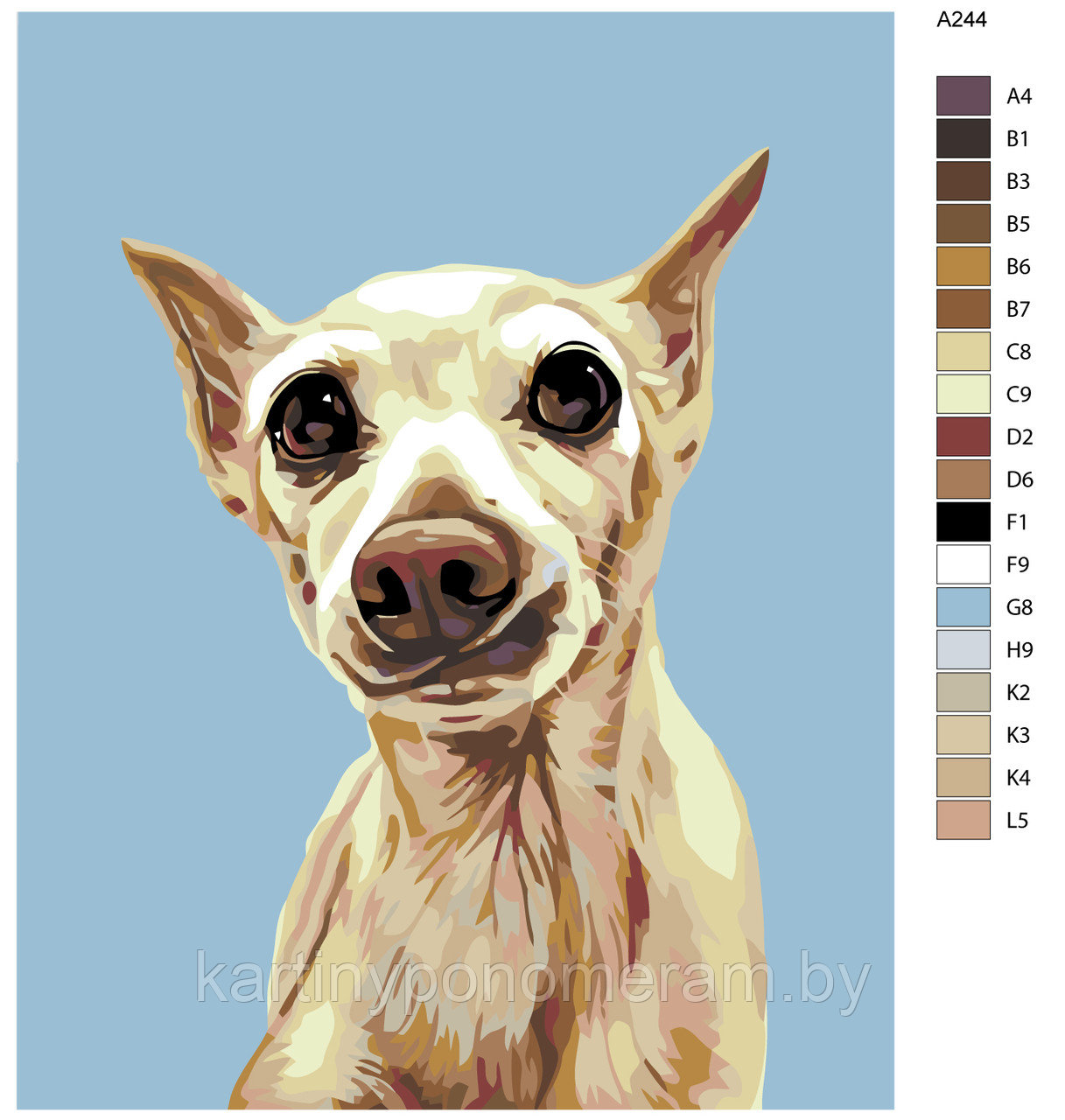 - 100 % хлопковый грунтованный холст, закрепленный на жестком деревянном подрамнике. На самом холсте изображен контурный рисунок с номерами цветов.