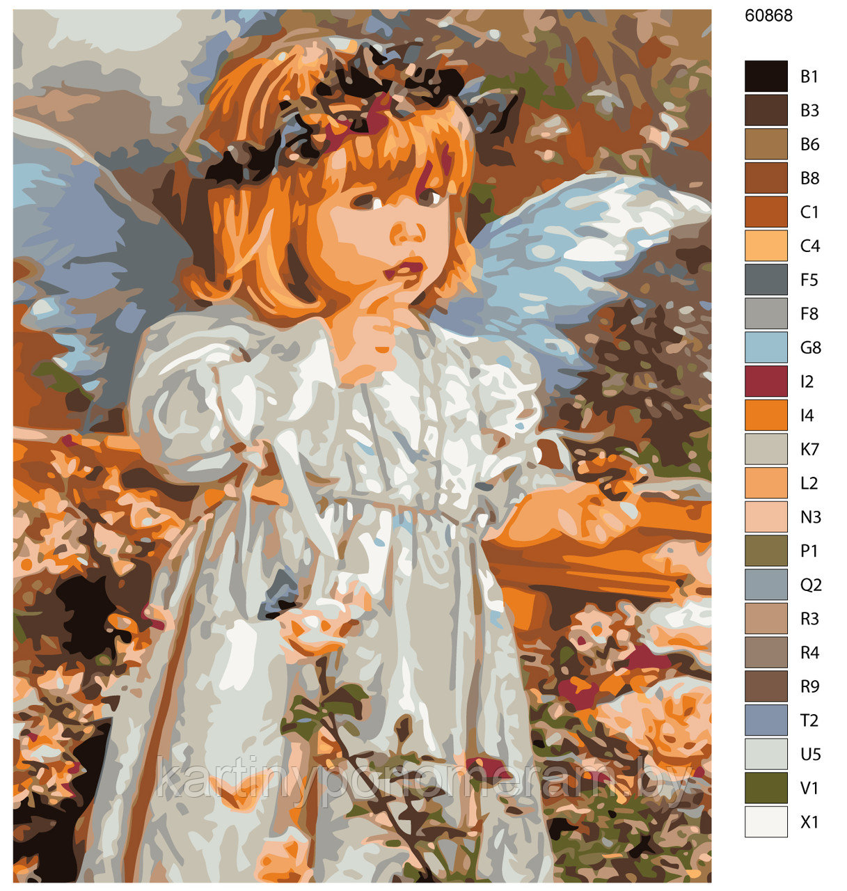- 100 % хлопковый грунтованный холст, закрепленный на жестком деревянном подрамнике. На самом холсте изображен контурный рисунок с номерами цветов.